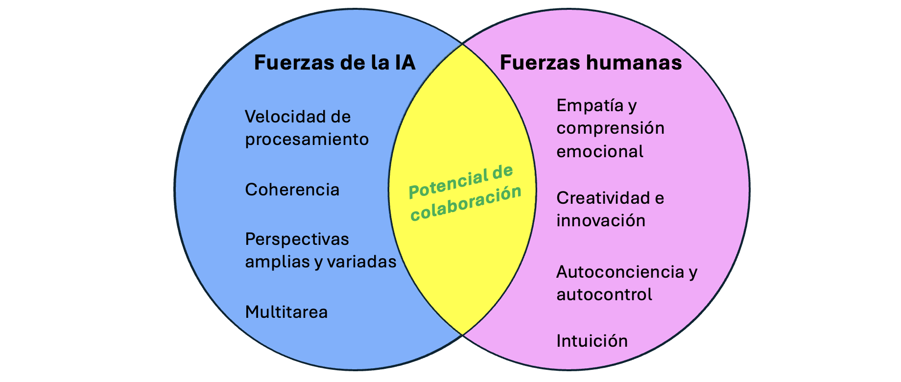 Combinar la IA y la colaboración humana: formar a las personas no sólo para que dominen las herramientas de IA, sino también para que sepan utilizar estas herramientas en sinergia con equipos humanos, comunidades y redes para maximizar el impacto.